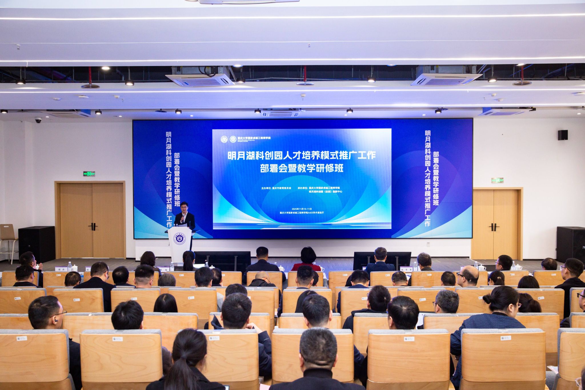 为深入学习贯彻习近平总书记关于教育的重要论述和党的二十届四中全会精神,加快推动教育科技人才一体化发展,切实深化本科教育教学改革,11月10日,明月湖科创园人才培养模式推广工作部署会在重庆大学国家卓越工程师学院举行。