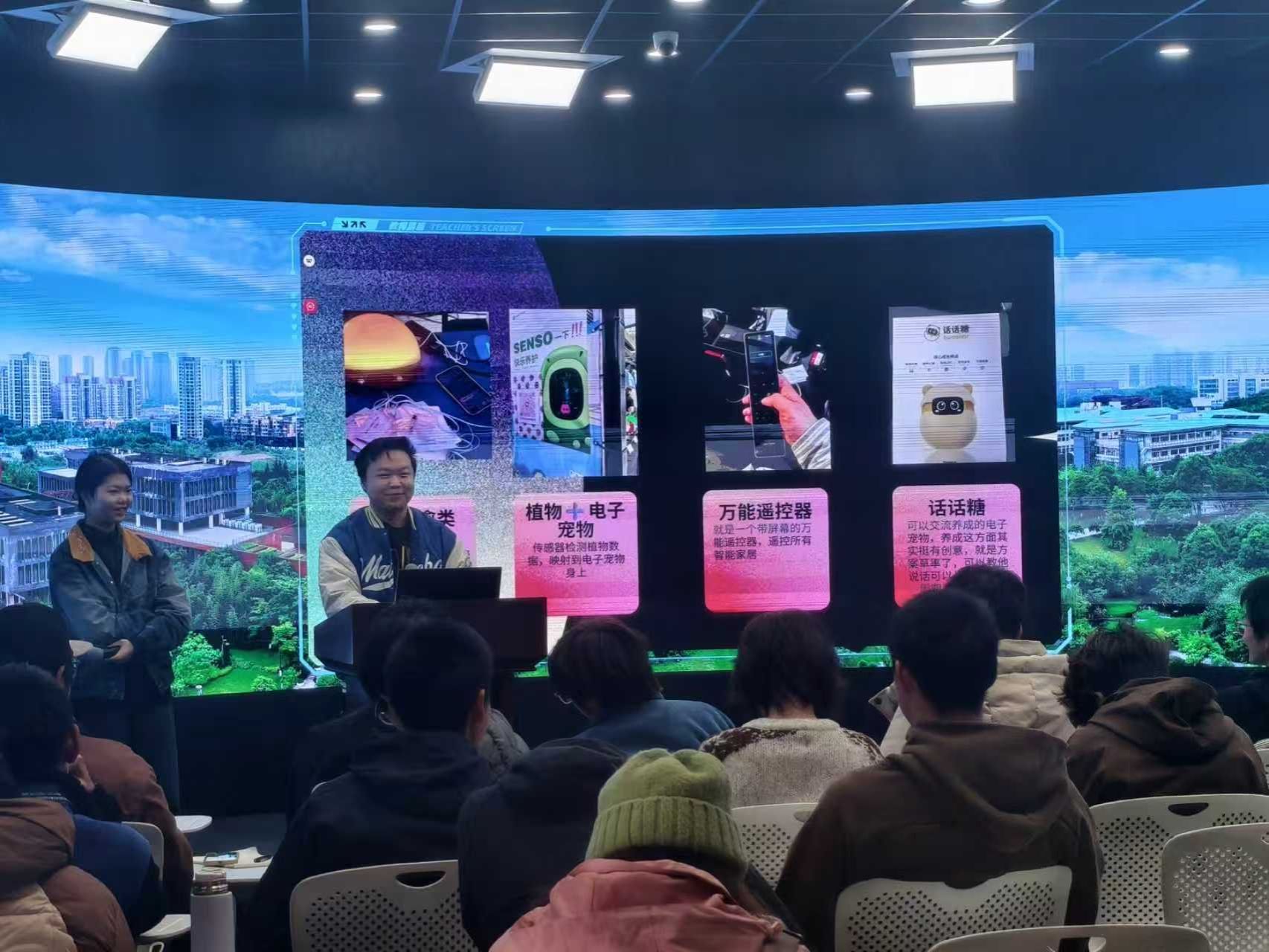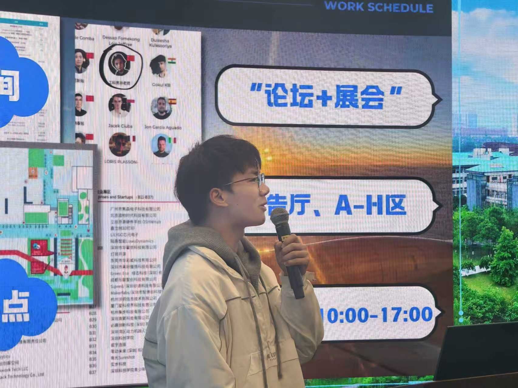 分享会伊始,2023级本科生丁达通过丰富的图片和视频资料,向在场同学展示了创客展会丰富的创业项目。“在展会上,我看到了许多正在落地、能够解决用户实际问题的产品。”丁达通过分析Bambu Lab公司有关拓竹附加产品的开发模式,为同学们将来进行自主创业提供了宝贵思路。