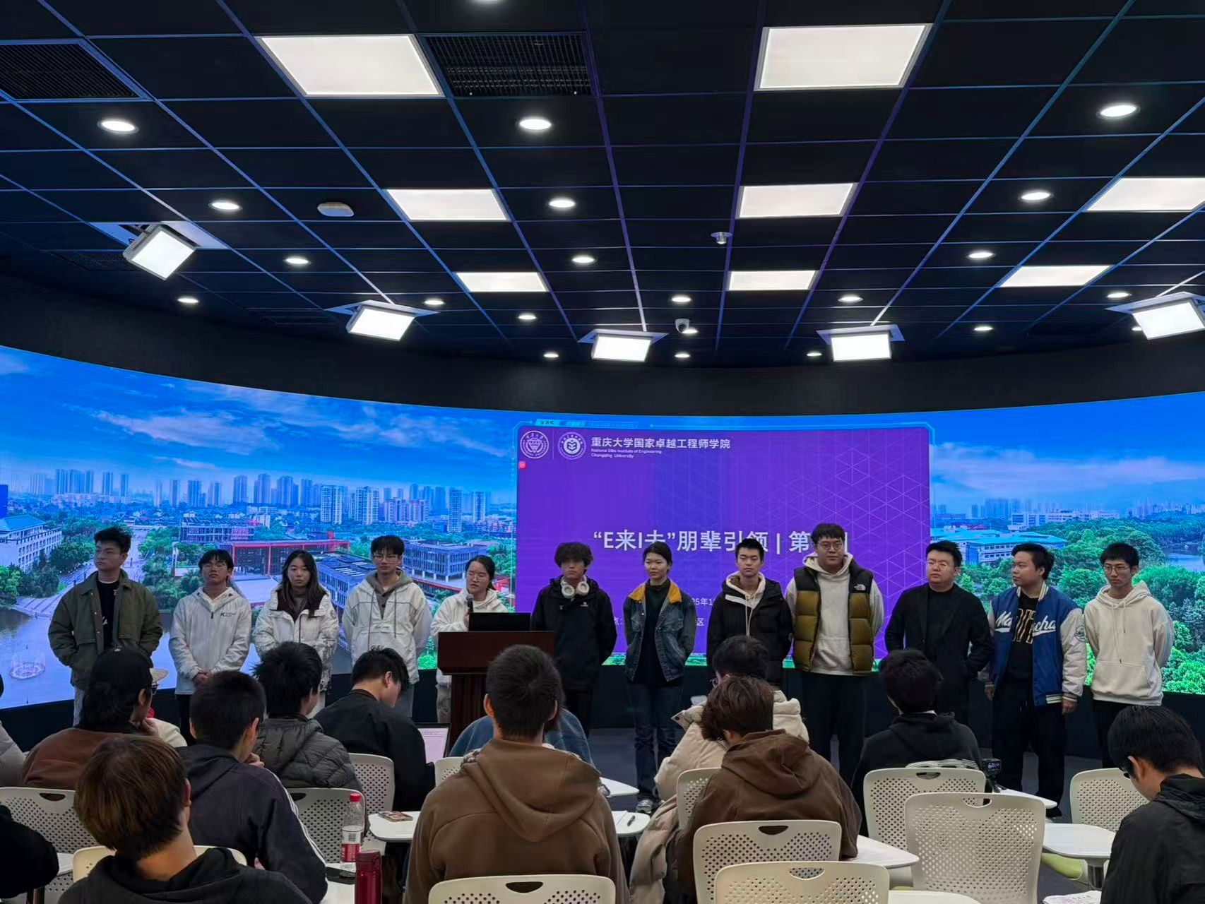 以创新之火,点燃创业梦想;以朋辈之光,照亮前行之路。为激发学生创新创业热情,拓宽科技视野,搭建朋辈交流平台,重庆大学国家卓越工程师学院于11月20日在重庆大学科学城校区虎溪校园学生交叉创新中心全景教室开展了“E来I去”朋辈引领第4期活动。本次活动邀请近期赴深圳参加2025大湾区国际创客峰会、首届XIN峰会的优秀学长学姐,面向低年级本科生分享他们的所见所闻、所思所感,共同探讨科技前沿动态与创业实践心得。