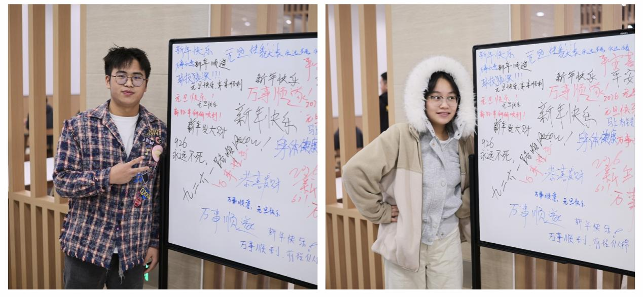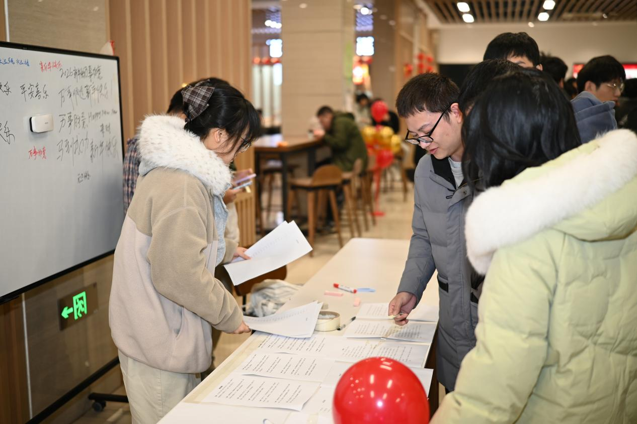 在新年祝福区,同学们纷纷提笔,在卡片上写下对新年的美好祈愿。“希望新的一年科研顺利!”“祝愿学院越来越好!”一句句真挚的祝福,寄托了学子们对未来的无限憧憬。参与活动的李同学表示:“这种活动不仅让我们品尝到了美食,更让我们感受到了学院的人文关怀。”